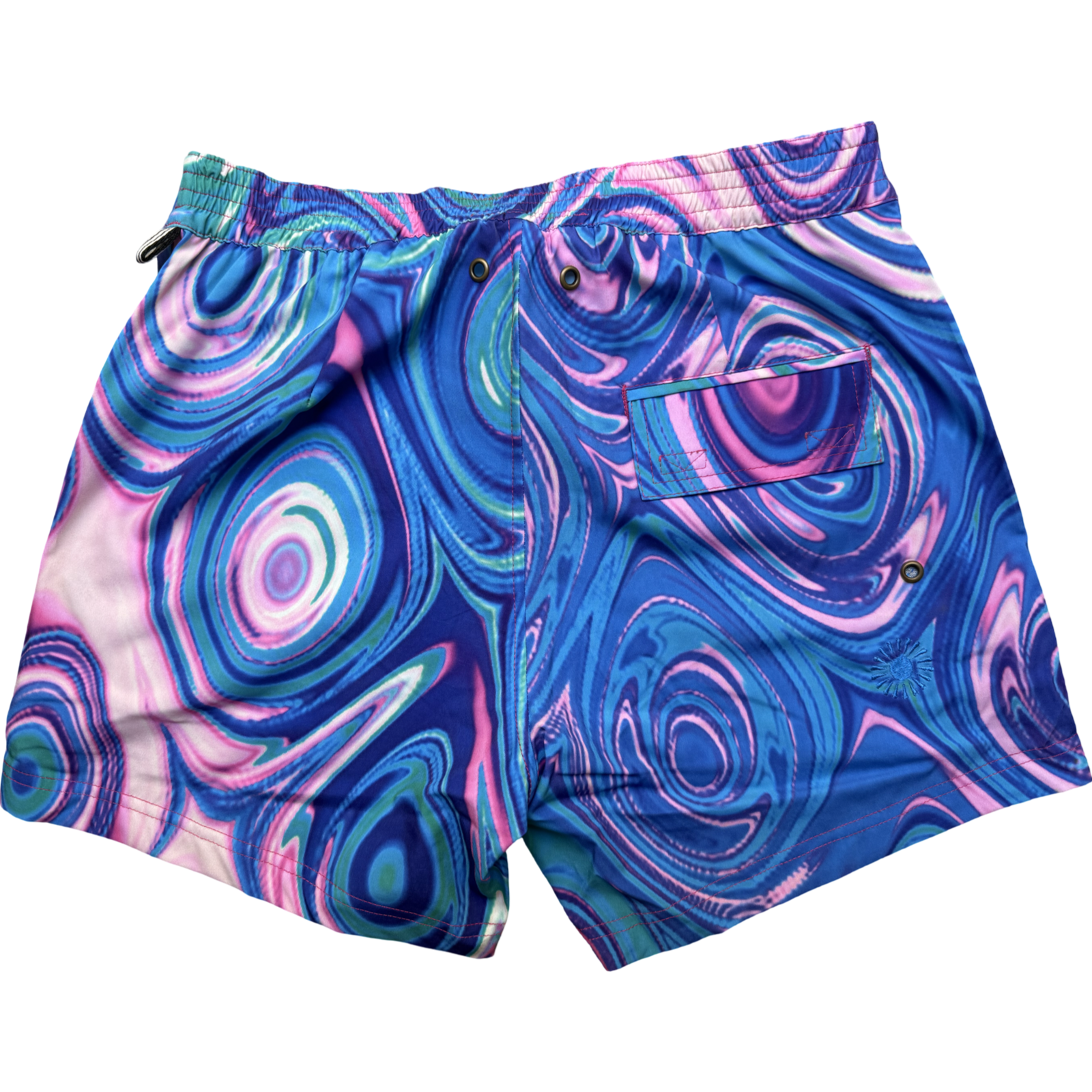 Tailored fit Back elastic waistband with flat front board short styling, rear darts, back pocket with velcro closure Contrast color inner waistband No Liner Zip…